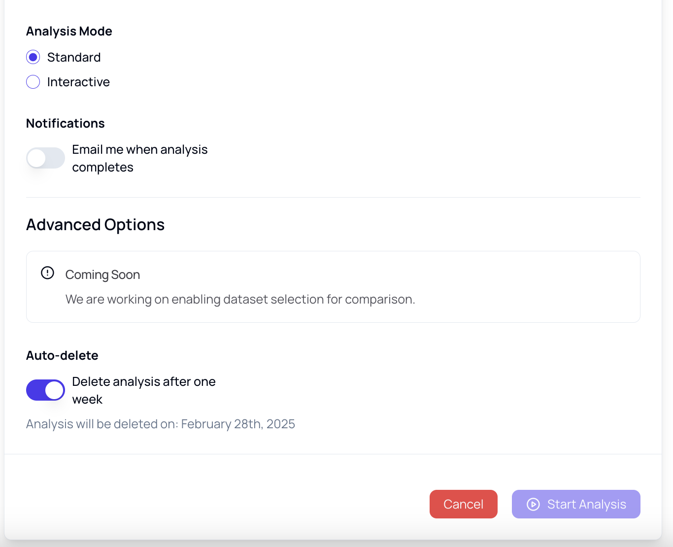 Receive email notifications when your analyses are complete—perfect for longer analyses.